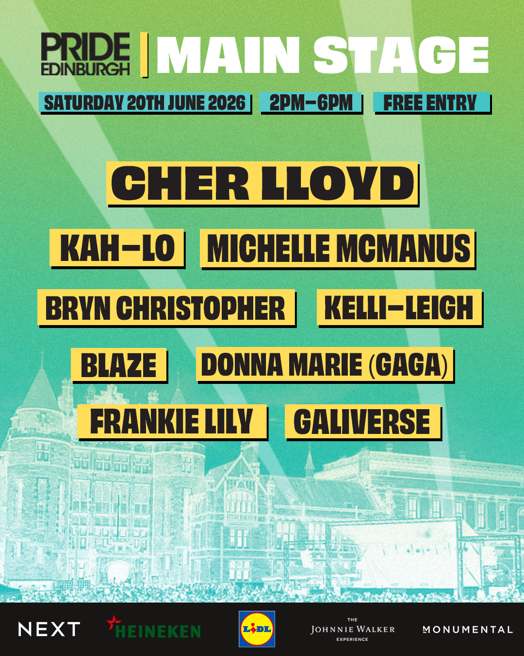 For 2026, Pride Edinburgh is proud to be supported by returning Headline Partner Lidl GB, alongside Heineken, NEXT, and The Johnnie Walker Experience.